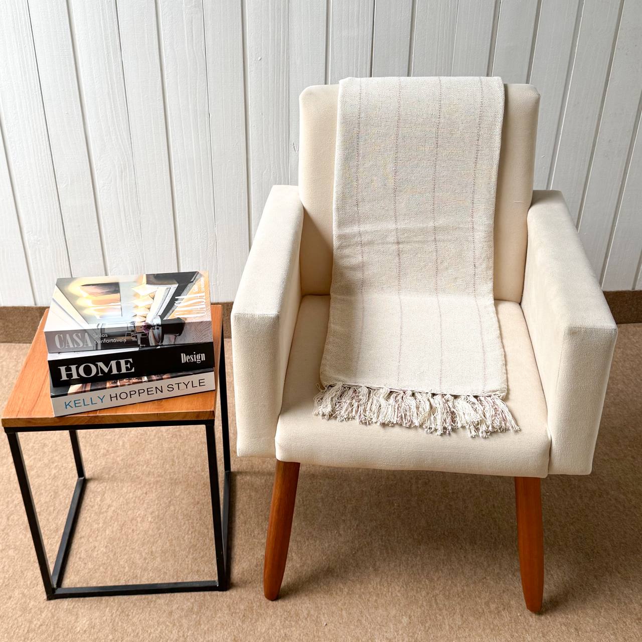 Xale de algodão produzido artesanalmente no tear em Minas Gerais.