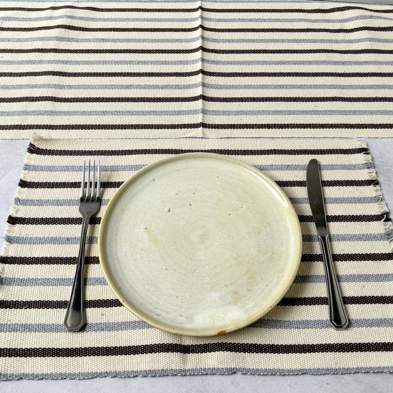 Jogo americano 7 peças - Cru com listras Marrom e Cinza