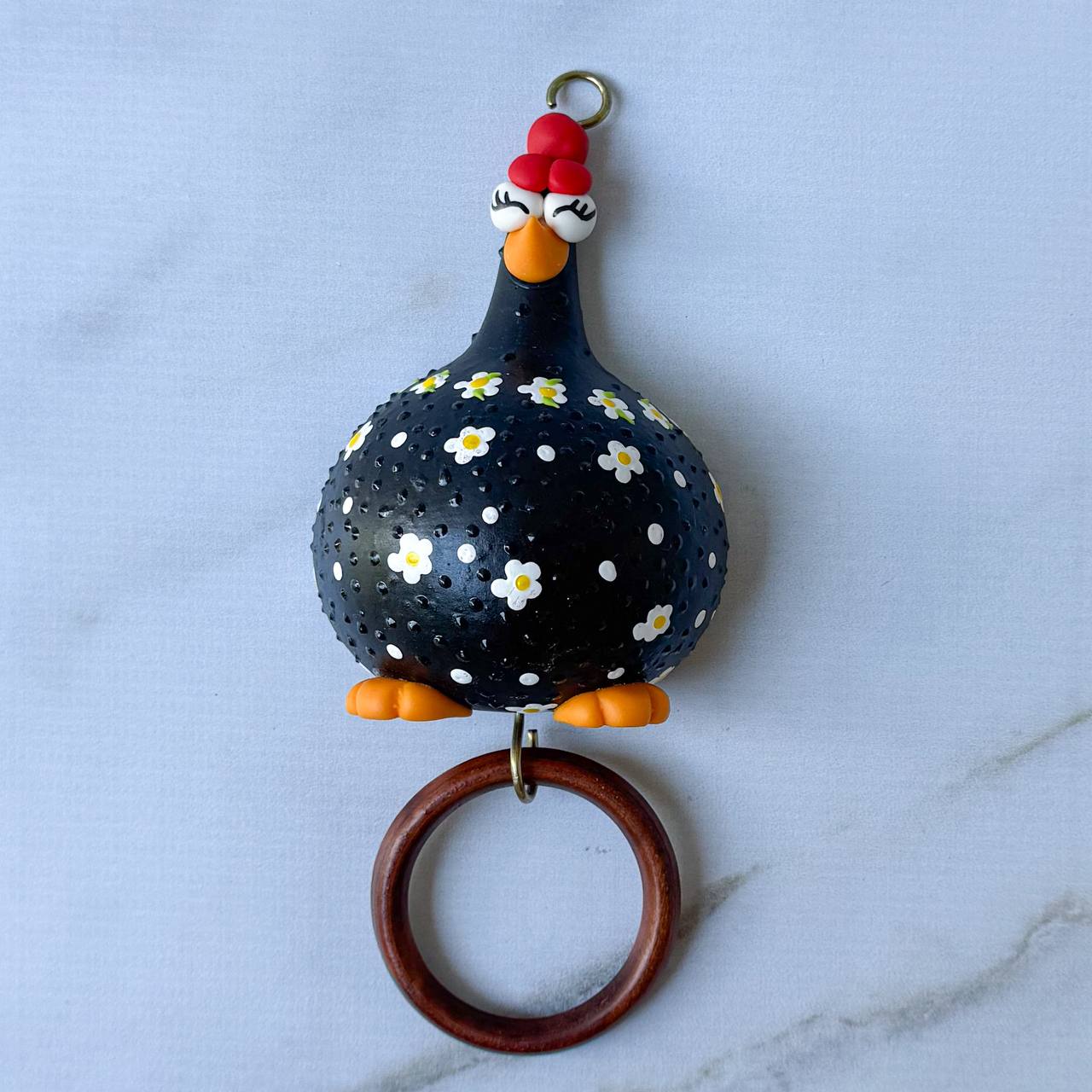Gancho decorativo em formato de galinha de cabaça, produzido no porongo de forma artesanal, com acabamento rústico e cheio de charme. A peça apresenta detalhes cuidadosamente trabalhados, valorizando o formato orgânico da cabaça e trazendo um toque lúdico e acolhedor ao ambiente. Possui uma argola de madeira resistente, ideal para pendurar pano de prato, toalhas ou pequenos utensílios. Perfeito para cozinhas com estilo rústico, farmhouse ou espaços gourmet, unindo funcionalidade e decoração em uma peça única.