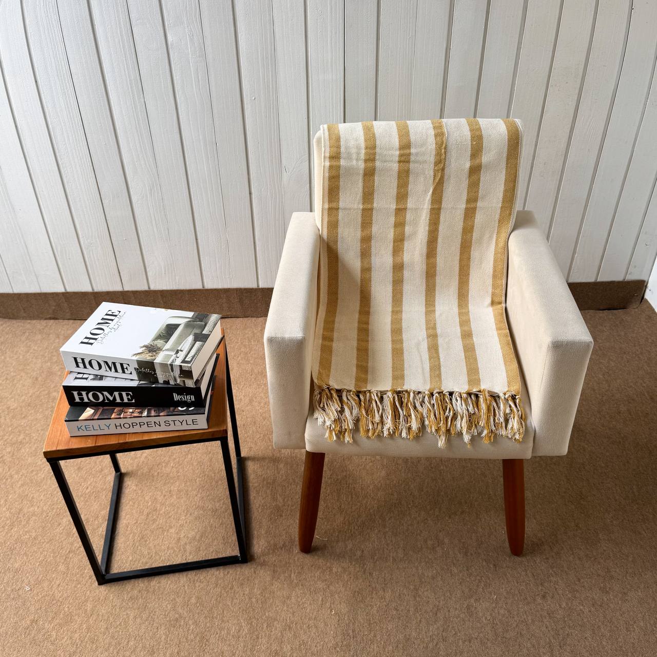 Manta M Cru com listras mostarda - 1,80m x 2,40m