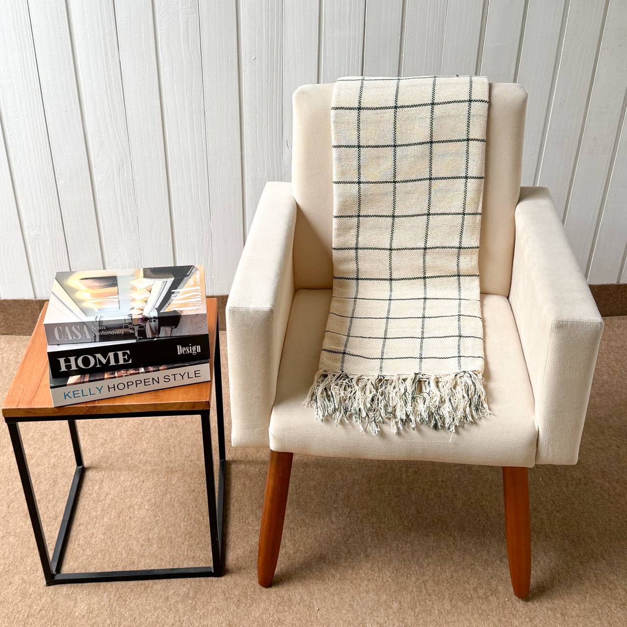 Xale de algodão produzido artesanalmente no tear em Minas Gerais.