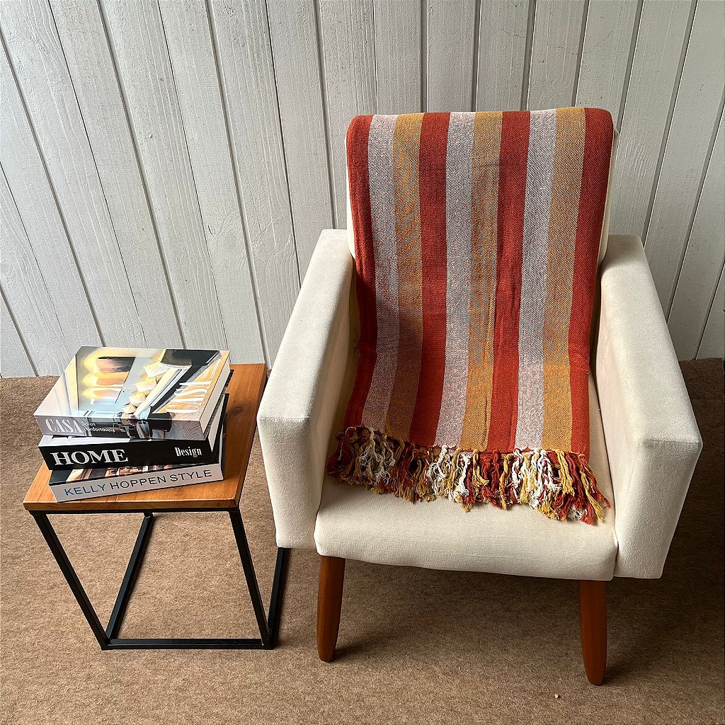 Manta G Listras Terracota e Mostarda - 2,2m x 2,6m