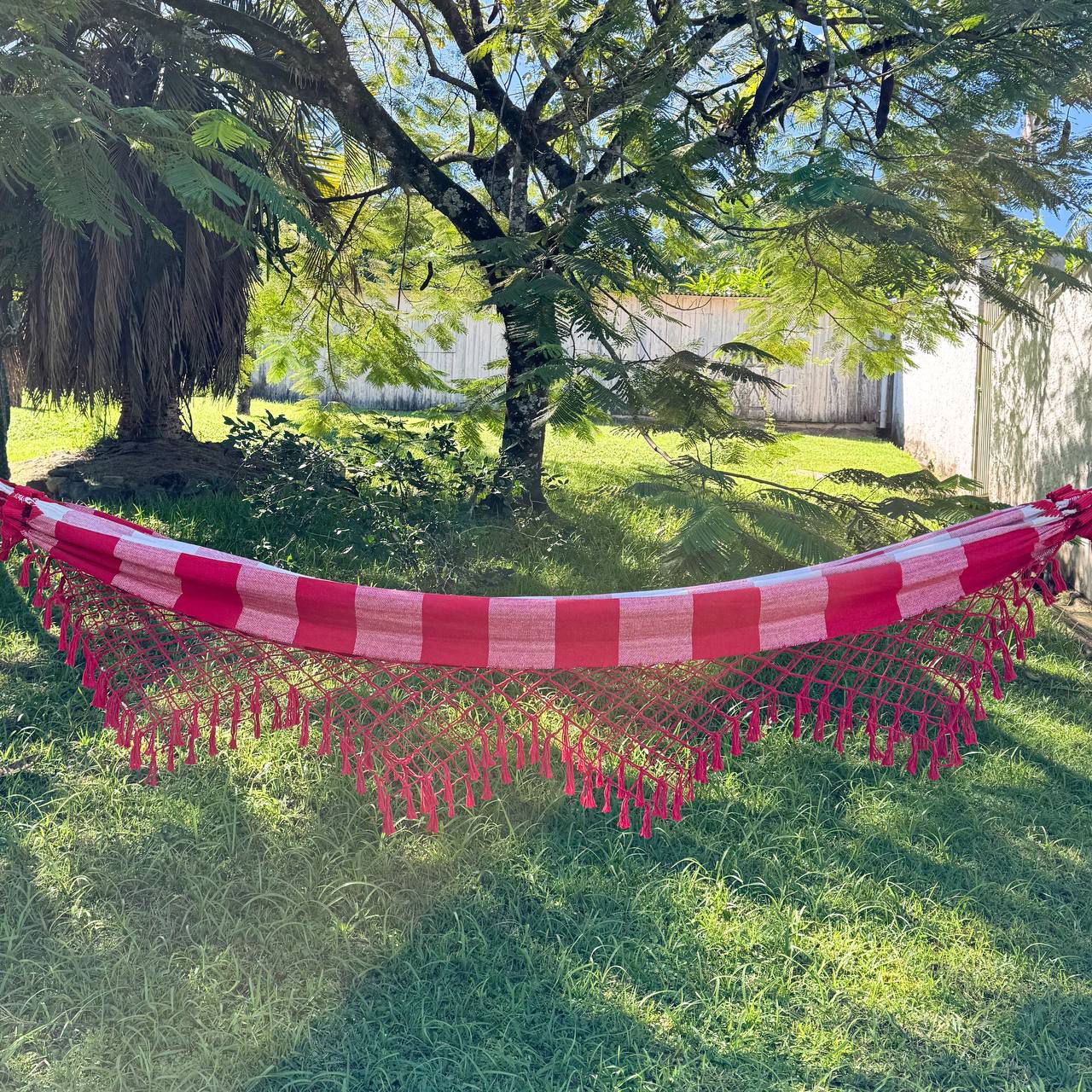 Com cores alegres, as redes mineiras levantam o astral de qualquer ambiente. É super macia, totalmente artesanal. É tudo de bom.