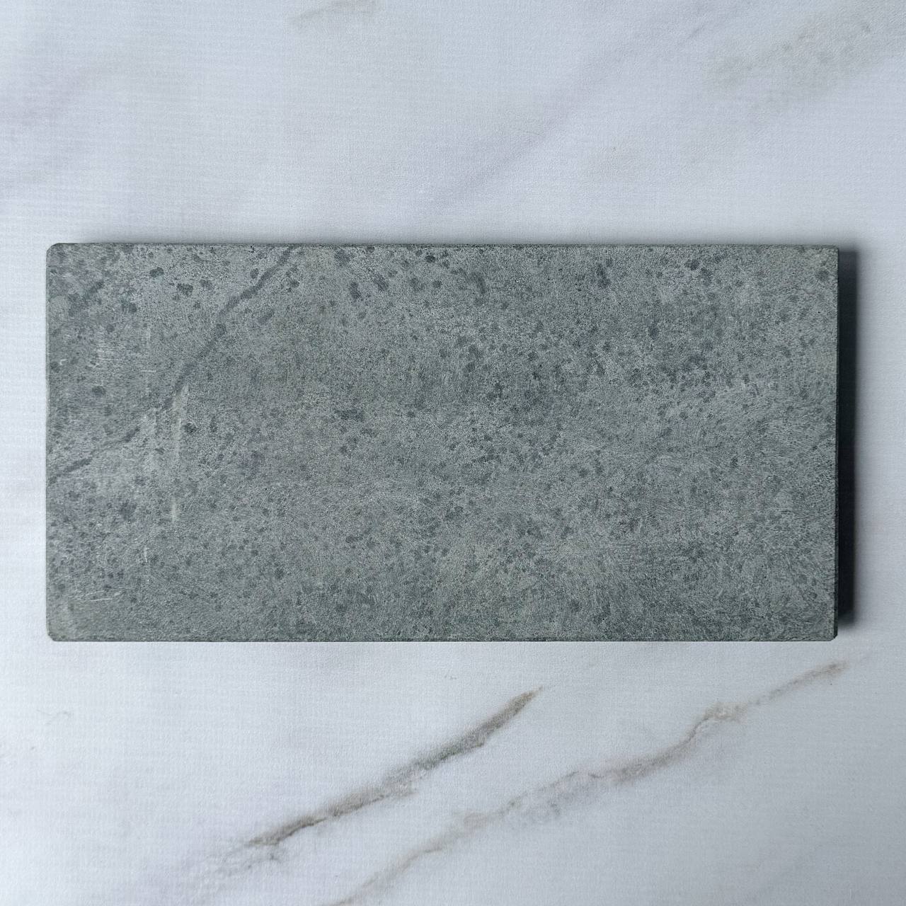 Uma base retangular de pedra sabão, trabalhada artesanalmente, com acabamento liso e cantos bem definidos. A peça destaca a beleza natural da pedra, com suas variações únicas de cor e veios, que vão do cinza a cor natural da pedra. Robusta e resistente, é versátil no uso: pode servir como suporte decorativo, base para esculturas, objetos de altar, utensílios ou até mesmo como elemento funcional na cozinha. Um item simples, porém sofisticado, que une utilidade e estética rústico-elegante.