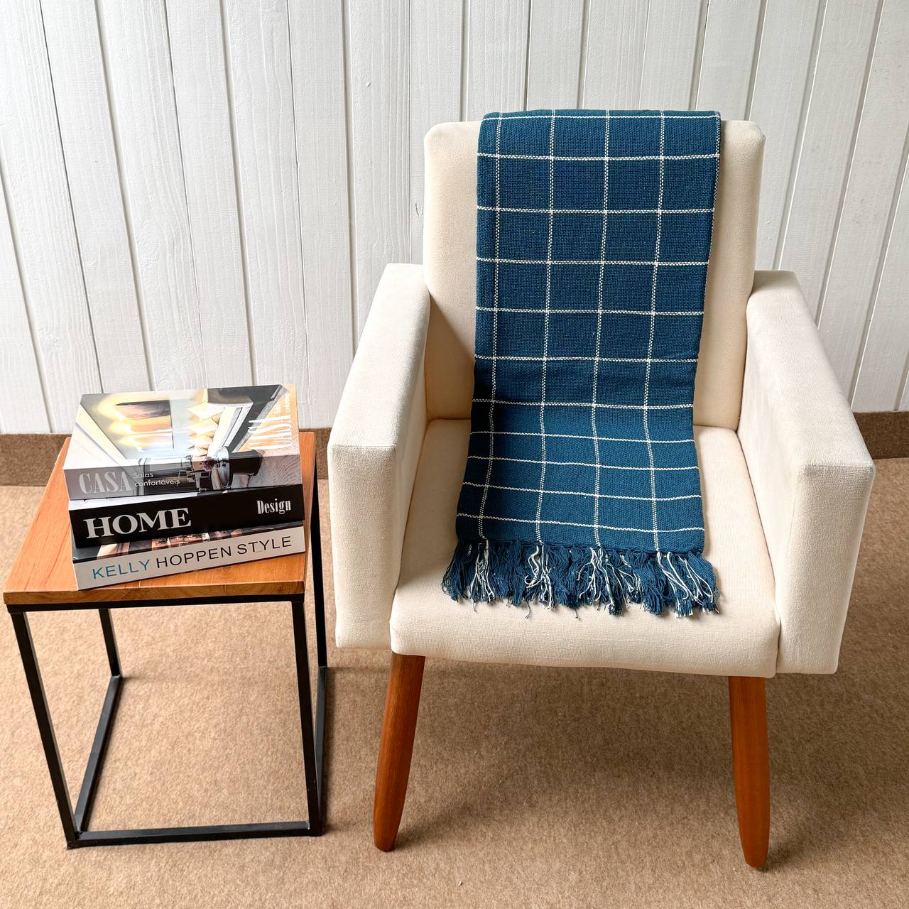 Xale de algodão produzido artesanalmente no tear em Minas Gerais.
