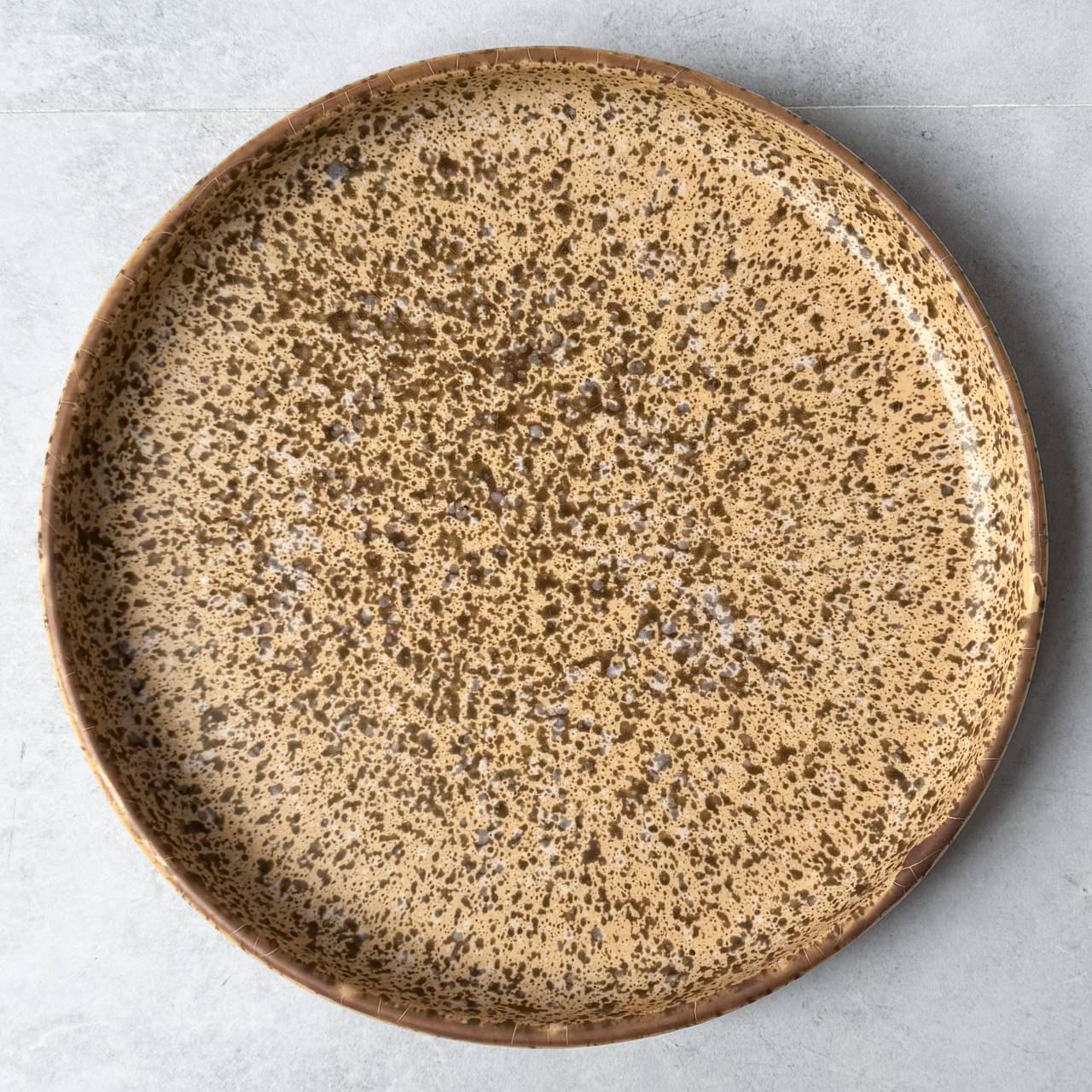 Prato de cerâmica na cor creme, com pequenas bordas laterais que trazem leveza e elegância. Os detalhes em “pintinhas” marrons criam um contraste delicado e moderno, adicionando personalidade à peça. Versátil e atemporal, é perfeito tanto para o uso diário quanto para compor mesas sofisticadas, unindo praticidade e estilo em um só item.