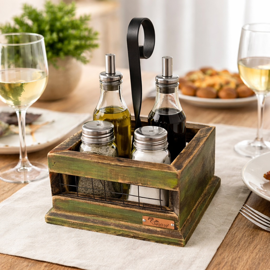 Funcional e versátil, é perfeito para acomodar azeite, vinagre, sal, pimenta e outros temperos, além de compor lindamente a mesa posta ou o cantinho gourmet com charme e autenticidade. Serve inclusive para acomodar talheres na hora de servir à mesa.