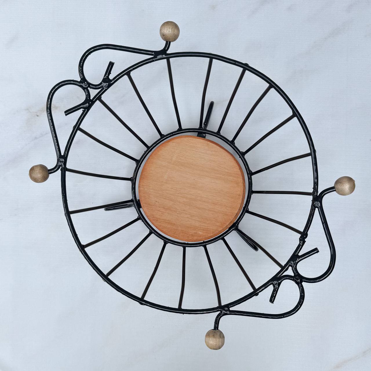 Fruteira produzida em ferro com acabamento na cor preta, em formato arredondado e estrutura vazada, que garante leveza visual e boa ventilação para as frutas. Possui base em madeira natural, que além de funcional, traz um contraste aconchegante e sofisticado ao design. Os detalhes em madeira nas extremidades e no topo acrescentam charme artesanal à peça. Com pés delicadamente curvados, a fruteira une rusticidade e elegância, sendo ideal para compor mesas de cozinha, bancadas ou mesas de centro, valorizando ambientes modernos, rústicos ou contemporâneos.