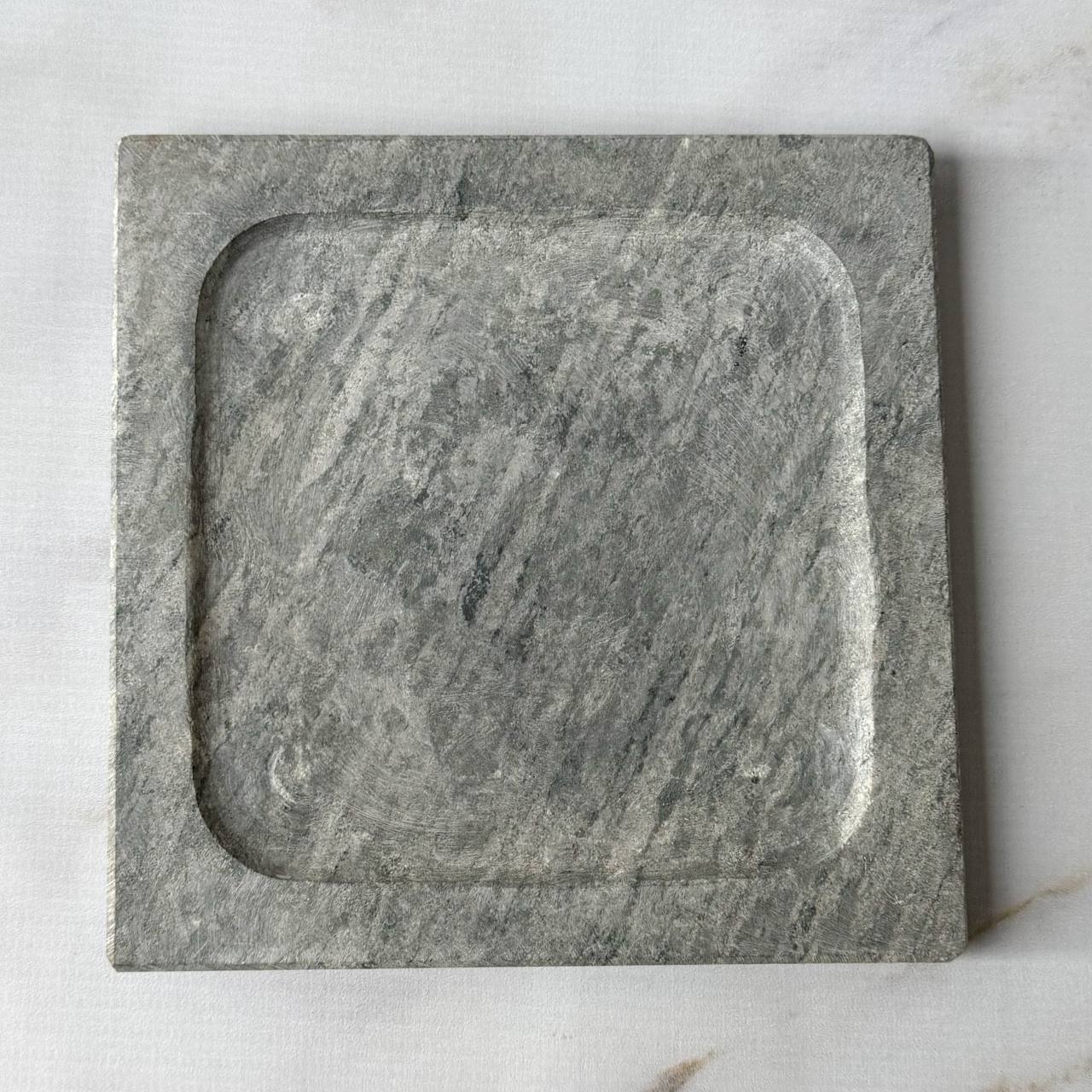 Uma base quadrada de pedra sabão, trabalhada artesanalmente, com acabamento liso e cantos bem definidos. A peça destaca a beleza natural da pedra, com suas variações únicas de cor e veios, que vão do cinza a cor natural da pedra. Robusta e resistente, é versátil no uso: pode servir como suporte decorativo, base para esculturas, objetos de altar, utensílios ou até mesmo como elemento funcional na cozinha. Um item simples, porém sofisticado, que une utilidade e estética rústico-elegante.