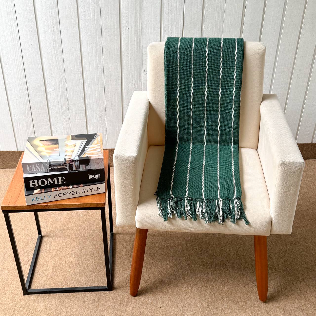 Xale de algodão produzido artesanalmente no tear em Minas Gerais.