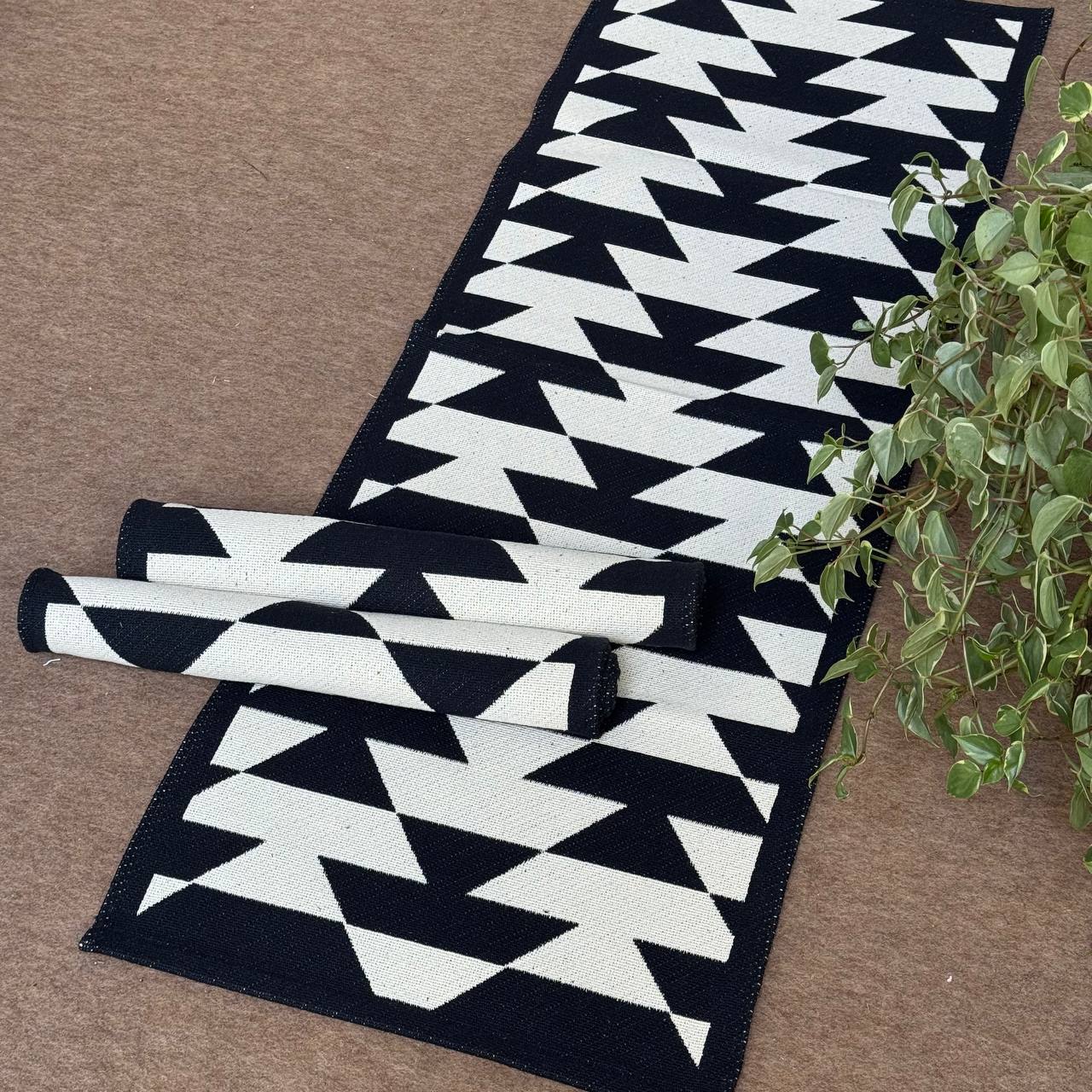 Trio de Tapetes Boho, feitos à mão por artesãos talentosos, esses tapetes oferecem uma combinação perfeita de cores vibrantes e texturas suaves para transformar seu espaço com conforto e elegância.