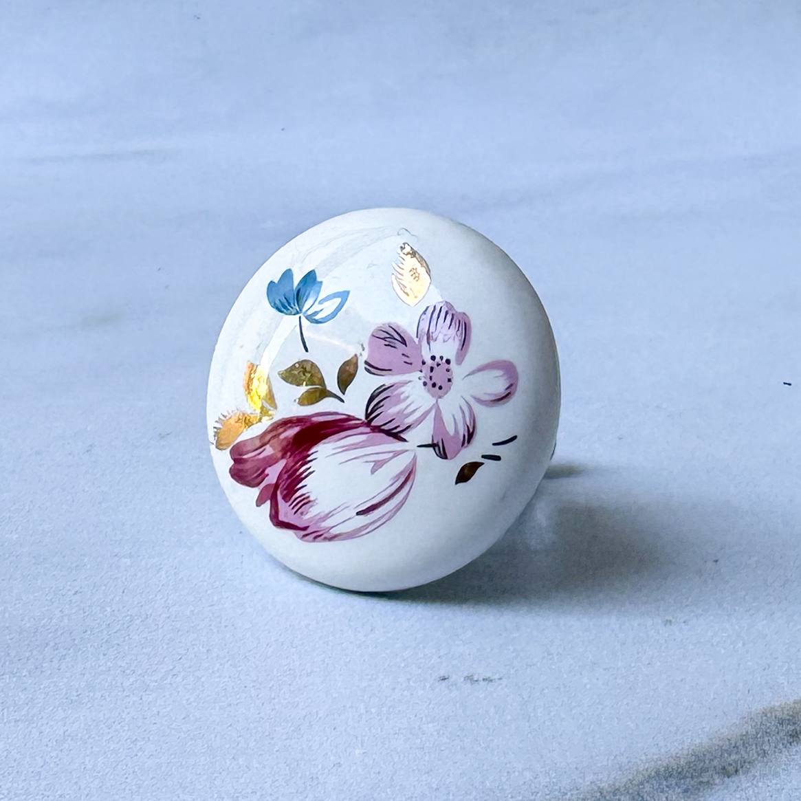 Puxador de porcelana artística, cuidadosamente pintado à mão, que transforma um simples detalhe funcional em um verdadeiro elemento decorativo. A superfície lisa e acetinada da porcelana recebe pinceladas delicadas, com cores harmônicas e traços únicos, tornando cada peça exclusiva. O acabamento manual valoriza o aspecto artesanal, trazendo personalidade, sofisticação e um toque artístico a móveis, portas ou gavetas. Ideal para quem aprecia design autoral e a beleza dos objetos feitos à mão.