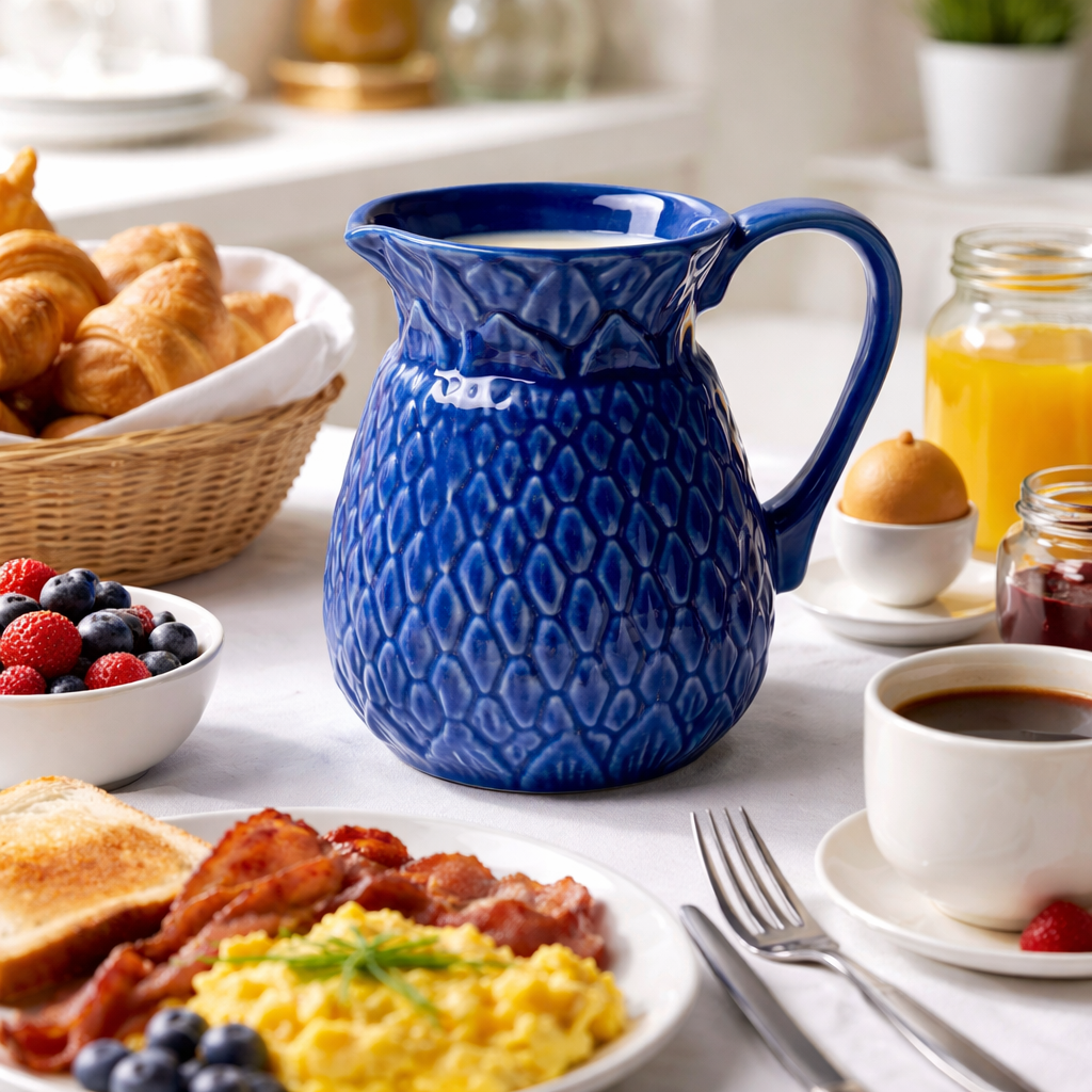 Versátil e decorativo, é ideal para servir leite, sucos ou água no café da manhã, além de compor a mesa com charme e personalidade. Também pode ser usado como peça decorativa, trazendo um toque de cor e artesanato à cozinha ou sala de jantar.