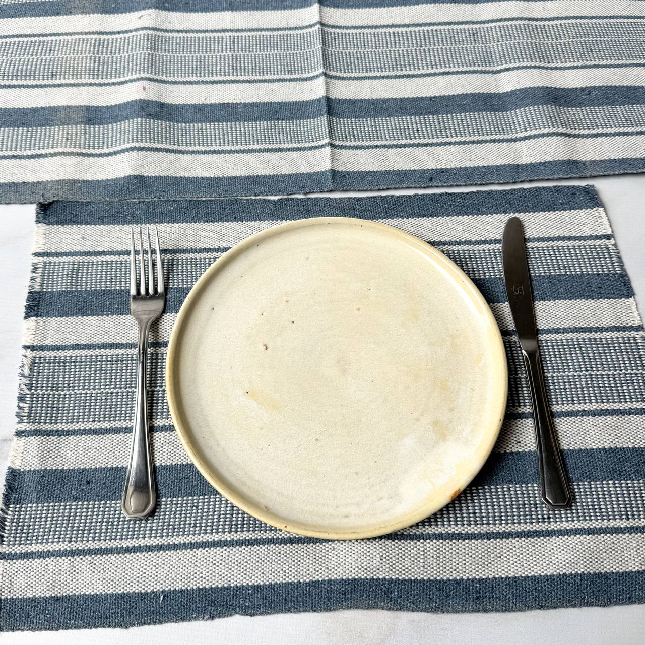 Jogo americano 7 peças - Azul Jeans com corrente Cru
