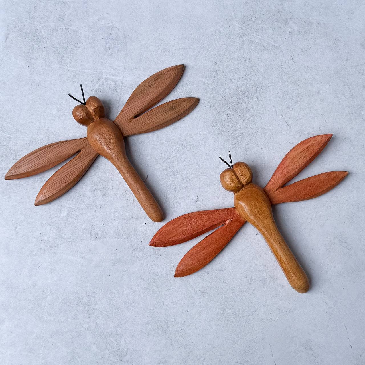 Traga um toque natural e delicado aos seus ambientes com essa linda dupla de libélulas decorativas em madeira, perfeitas para pendurar em paredes, portas ou varandas.