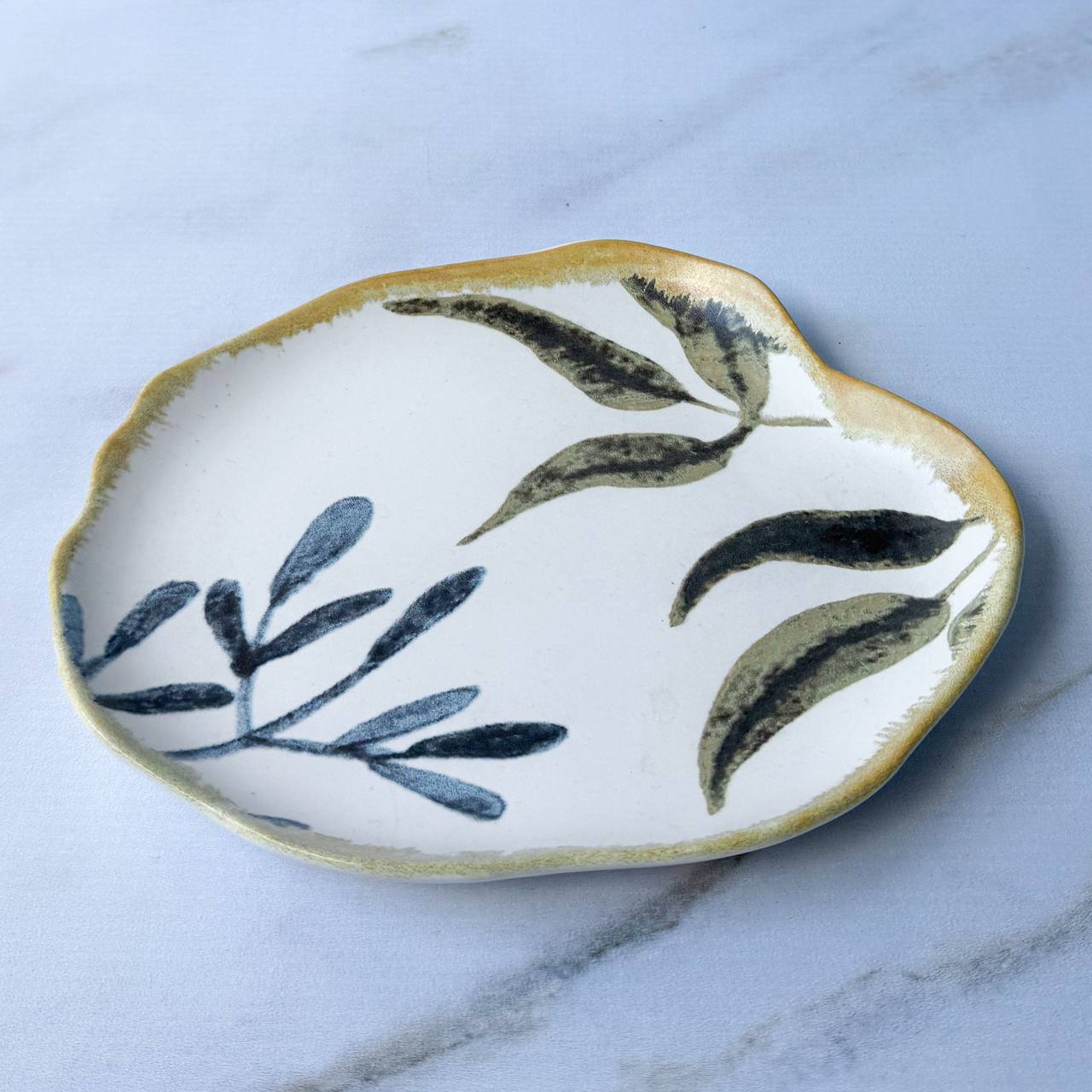 Este prato de cerâmica destaca-se pela sua elegância rústica e design exclusivo. Cores suaves e detalhes delicados. Sua borda irregular dá um charme natural e orgânico, proporcionando personalidade e autenticidade à peça. Perfeito para compor mesas criativas ou como peça decorativa, este prato combina funcionalidade e beleza, tornando-se uma escolha sofisticada para quem valoriza trabalhos manuais e design diferenciado.