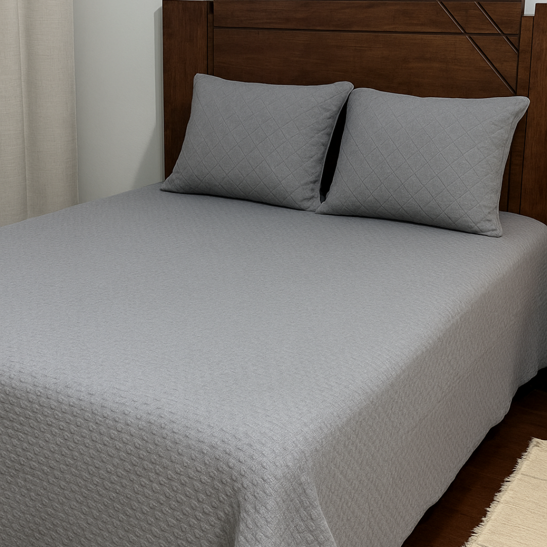 Cobre Leito com 02 fronhas Rústicas - Cinza