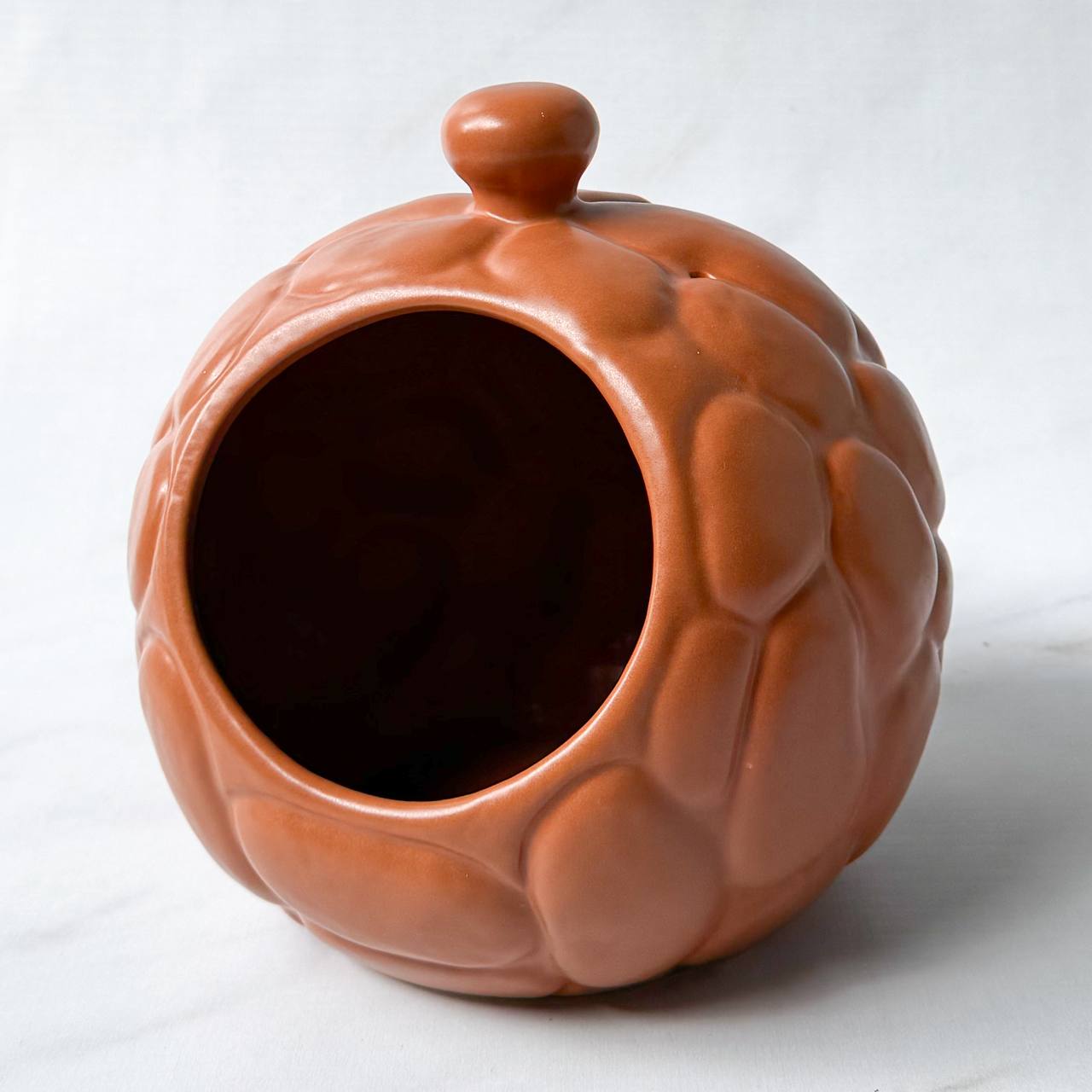 Este charmoso porta-batatas em cerâmica une funcionalidade e decoração de forma impecável. Com design inspirado em uma abóbora, a peça possui acabamento artesanal em tom off-white com delicados pontilhados, trazendo um visual aconchegante e atemporal.