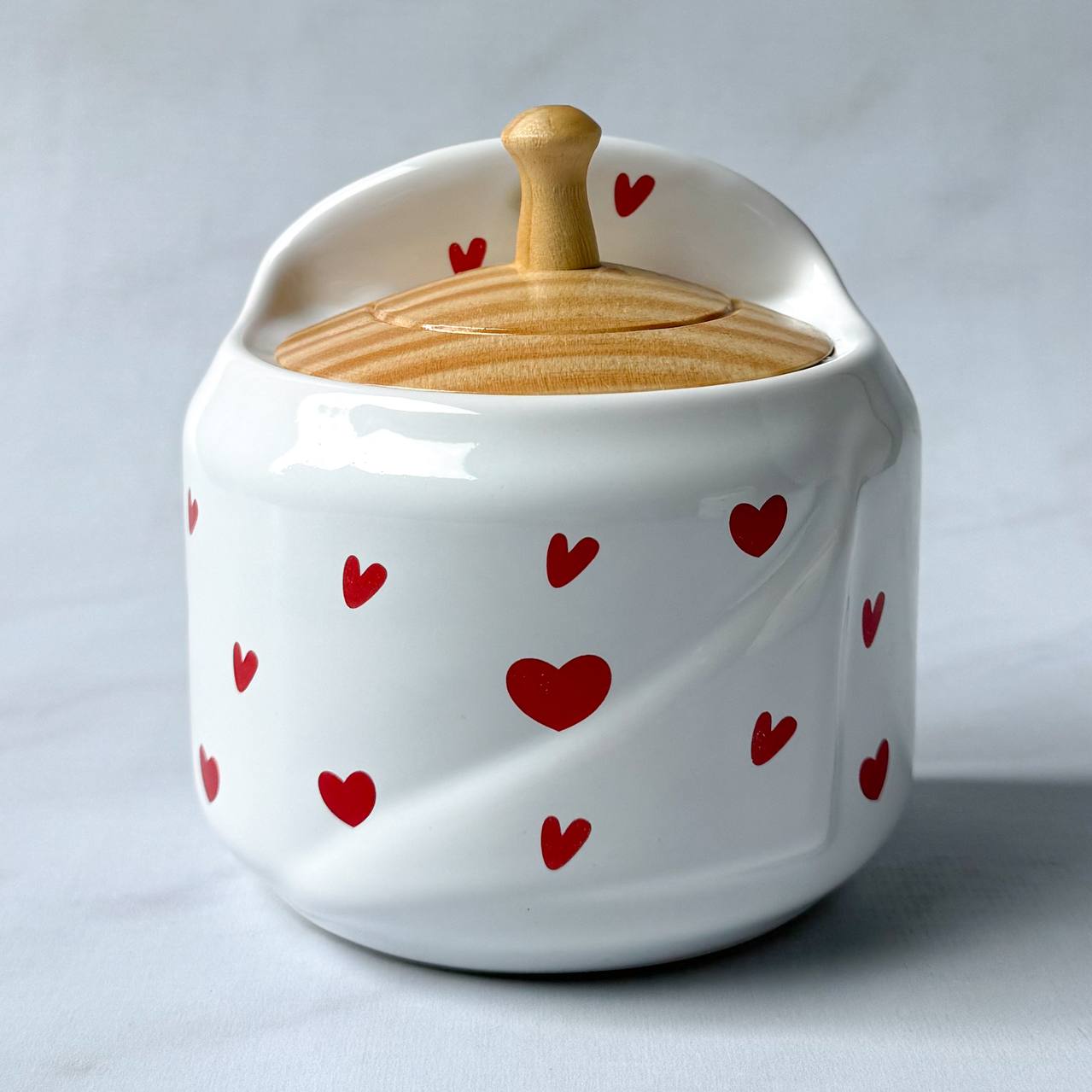 Saleiro de Cerâmica com Tampa de Madeira - Coração