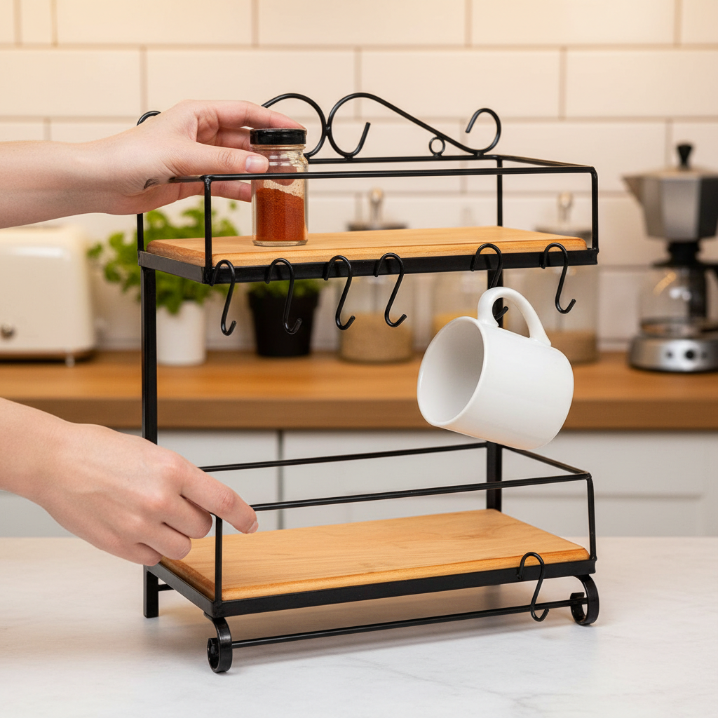 É uma peça que funciona tanto como organizador quanto como item decorativo, ideal para bancadas, aparadores ou cantinhos de café ☕✨