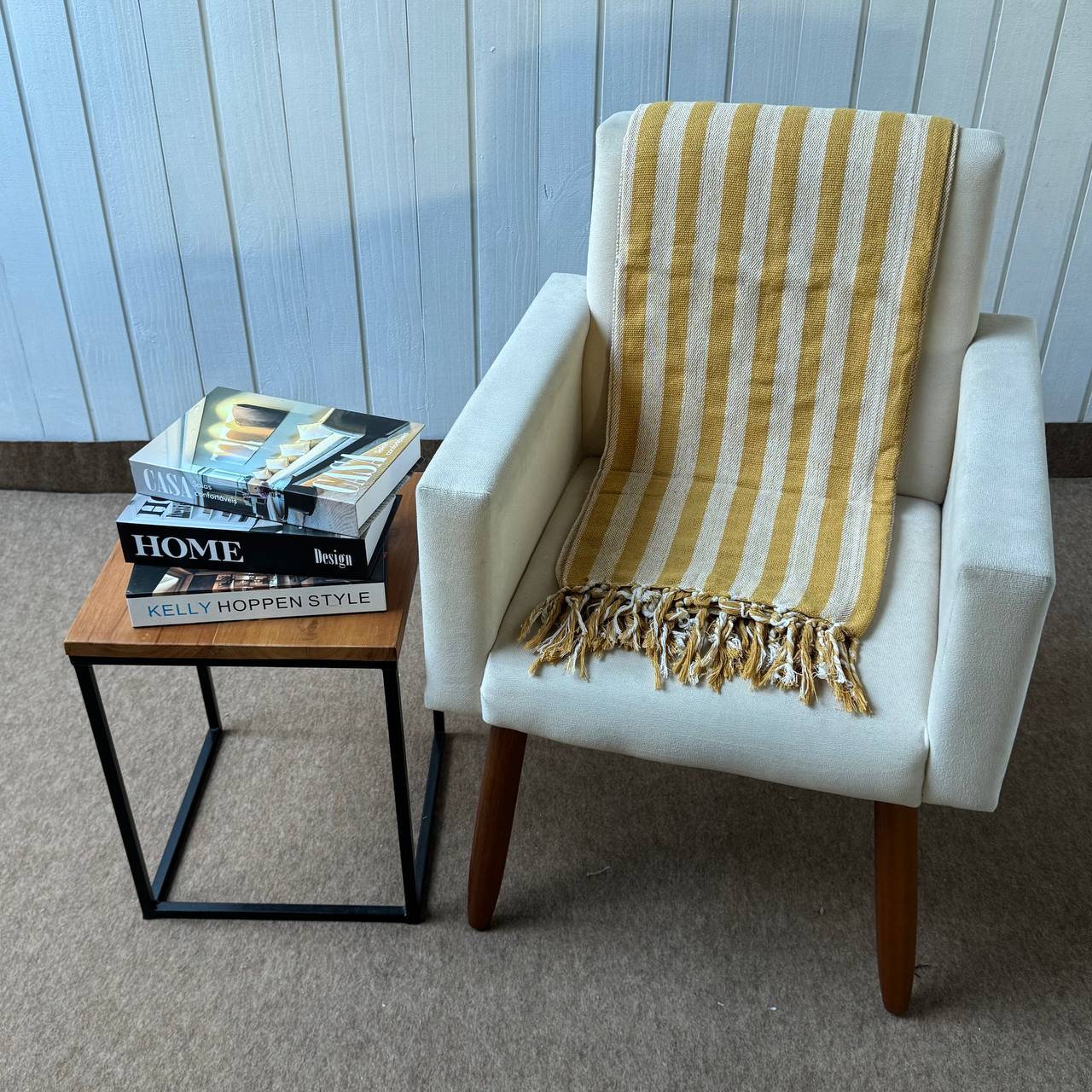 Manta P Listras Mostarda com Cru - 1,40m x 2,40m