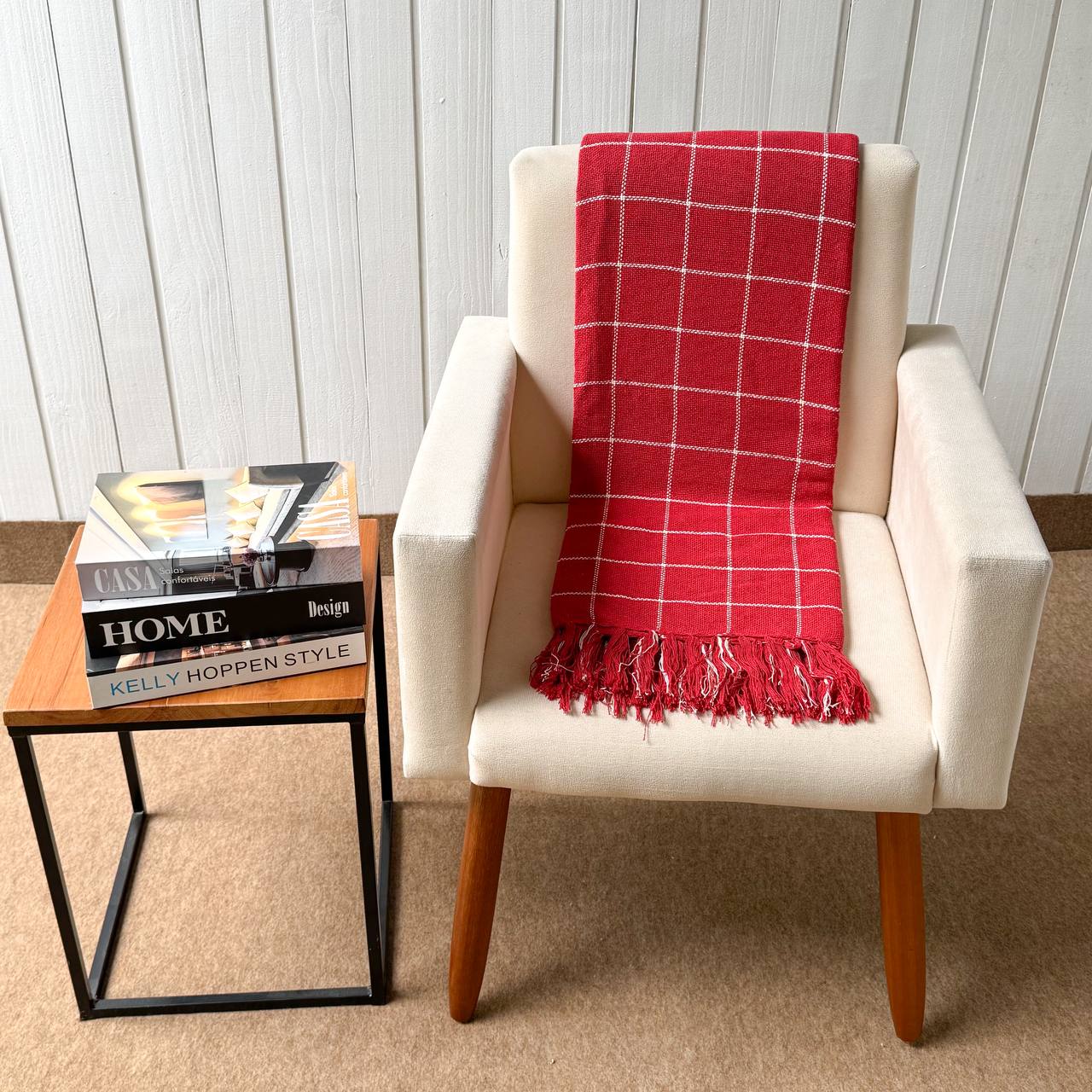 Xale de algodão produzido artesanalmente no tear em Minas Gerais.