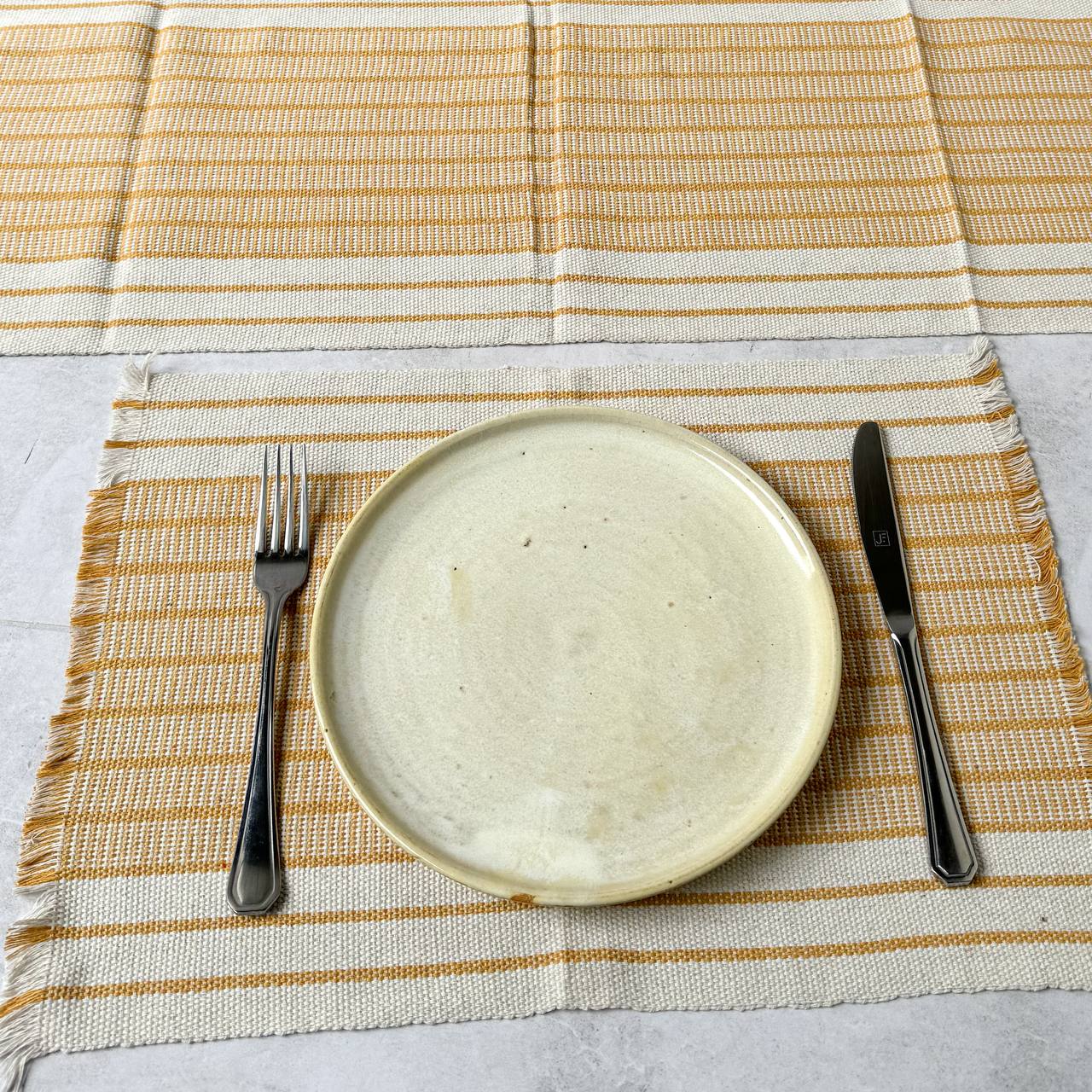 Jogo americano 7 peças - Listras Mostarda e Cru