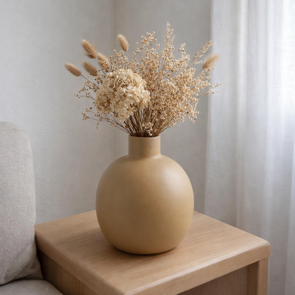 Versátil e atemporal, é ideal para composições com flores secas, ramos naturais ou para ser usado sozinho como peça decorativa. Combina perfeitamente com ambientes de estilo contemporâneo, minimalista, escandinavo ou rústico sofisticado, trazendo aconchego e elegância à decoração.