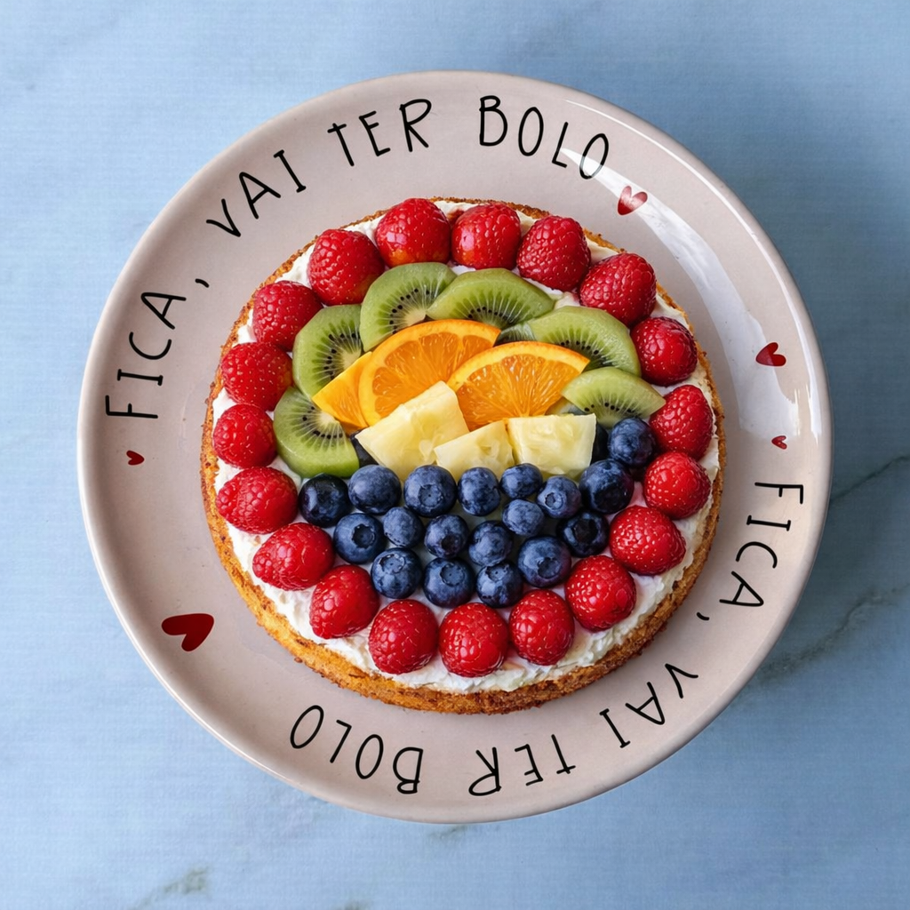 Boleira de Cerâmica rosa "Fica, vai ter bolo" com detalhes de coração no pé