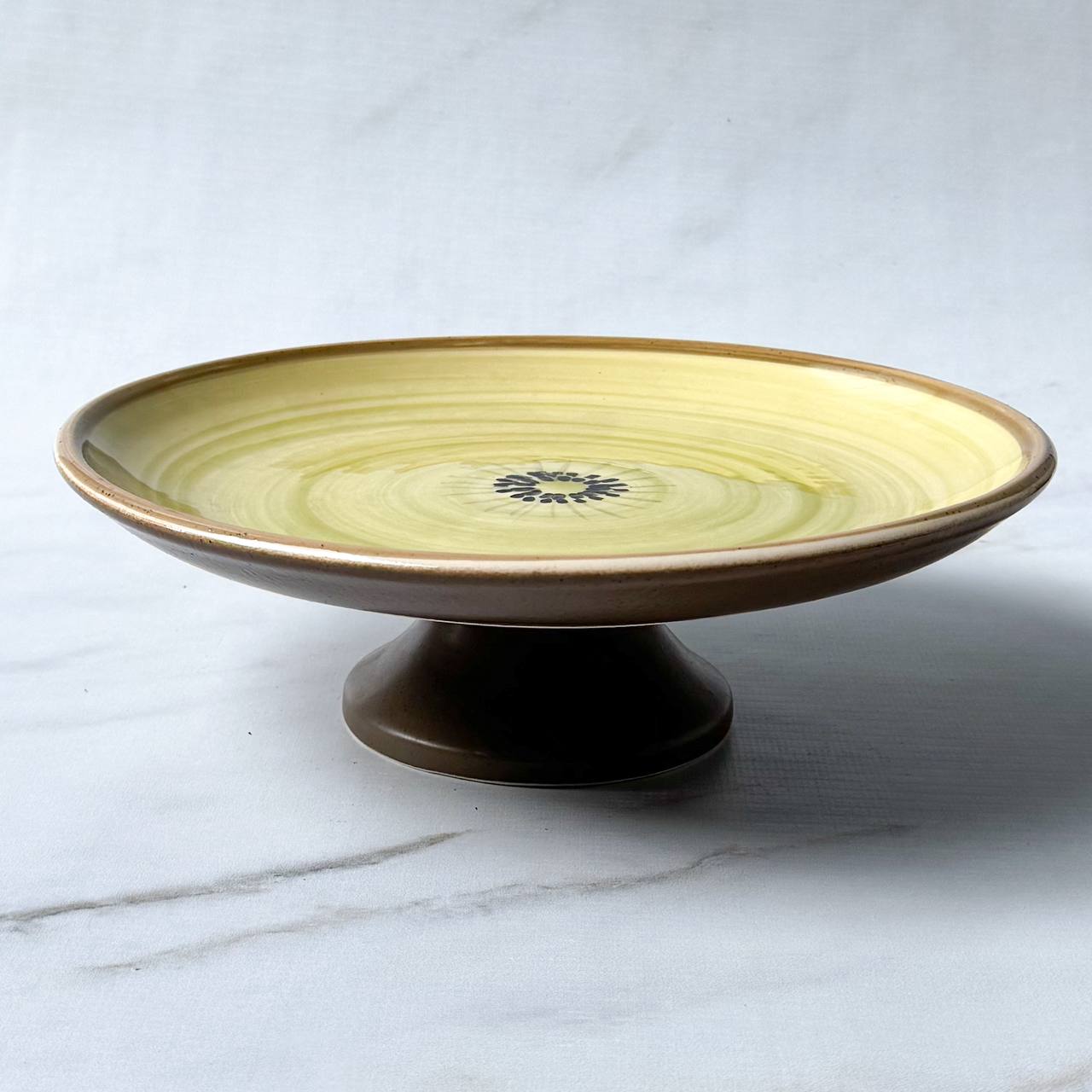 Boleira de Cerâmica com estampa de kiwi com pés marrom.