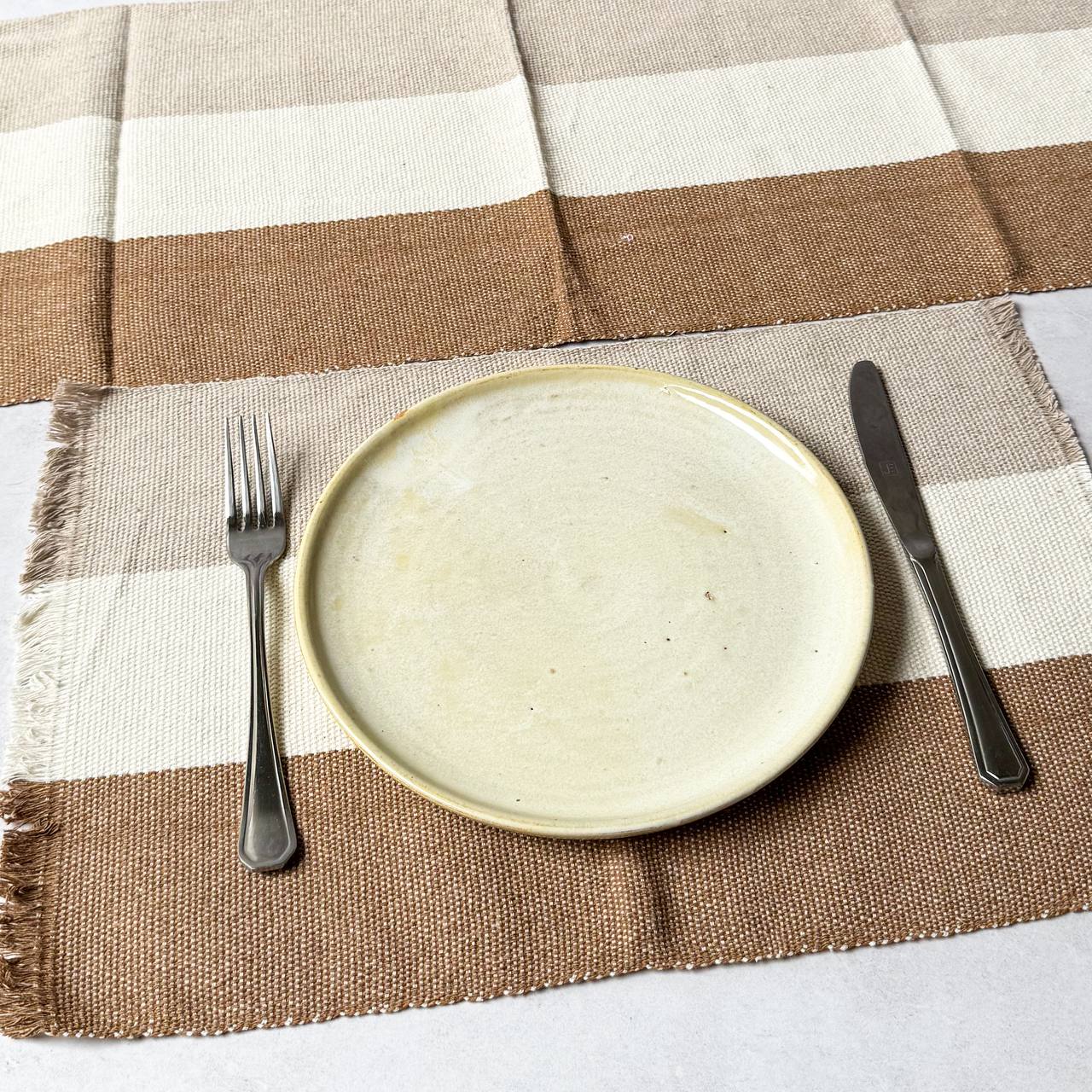 Jogo americano 7 peças - Listras Caramelo, Cru e Ocre